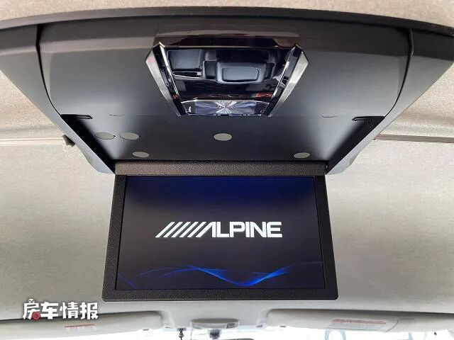 当晚上需要睡觉休息的时候,只需要将前方的对卡座沙发相互拼接,即可变为一张能够容纳两个人使用的简易沙发床,另外在驾驶室顶部还配置了一台19寸的吸顶电视,也能够满足日常的基础娱乐需求。
