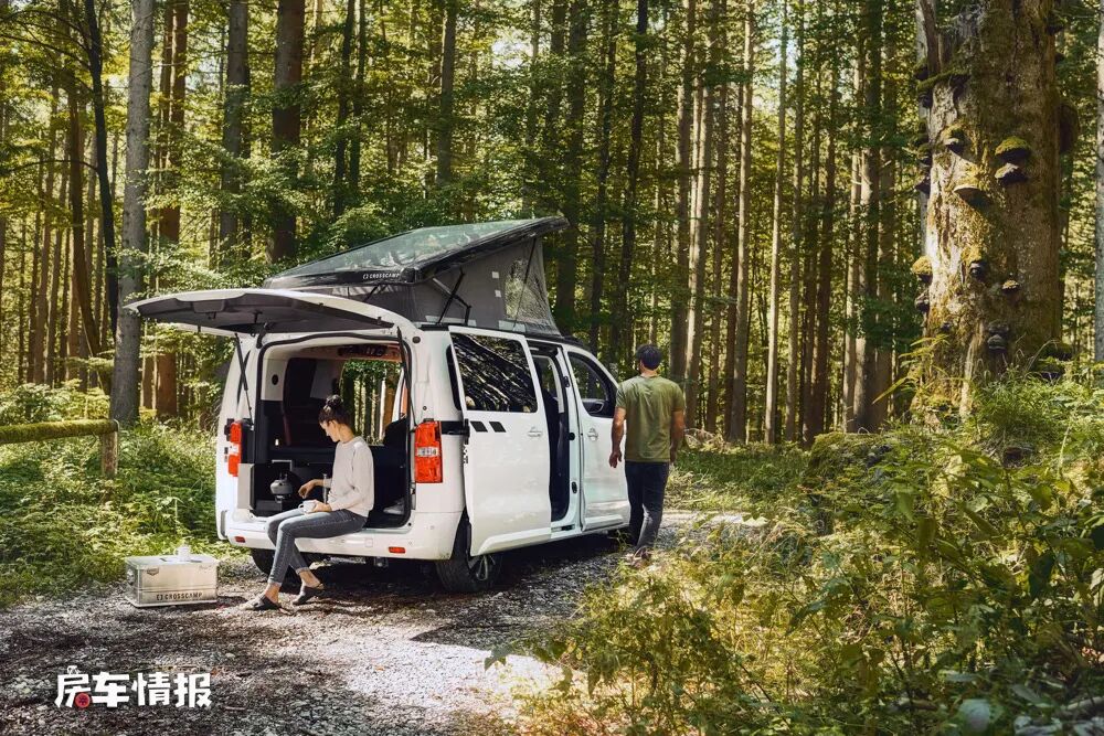 外观上,全车还是保留了比较简约低调的造型,后期可定制比较显眼的金属橙色,车身右侧提供了手动的遮阳棚,能够满足在外露营时的需求,后期也可以在车尾加装自行车架,以满足露营朋友的需求。