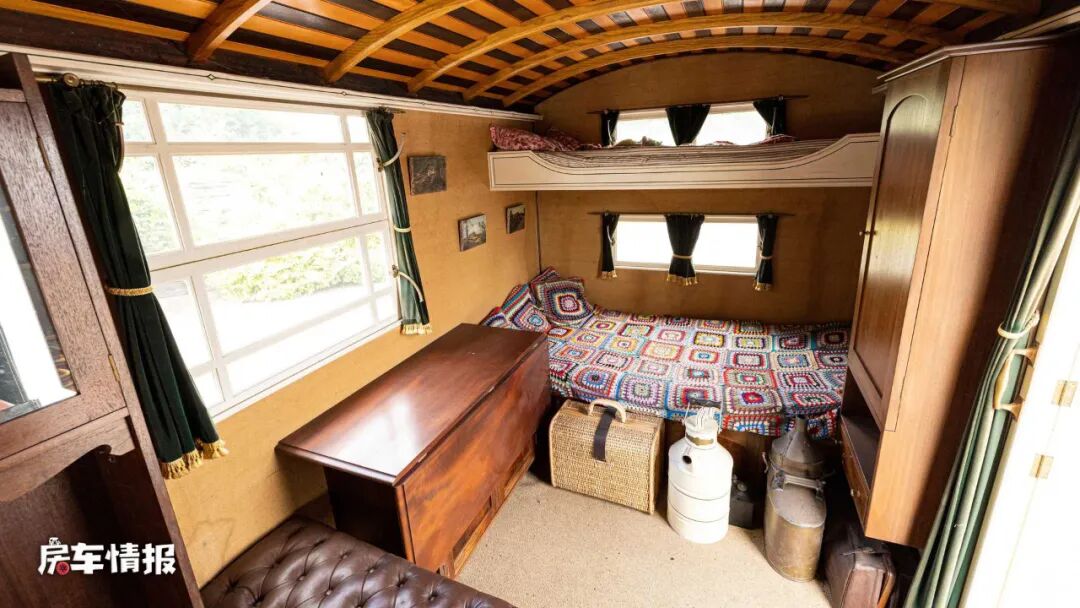 在驾驶室的上方是一张小型的床铺,有点像现在的额头床设计,整体也能满足两个成年人的使用。