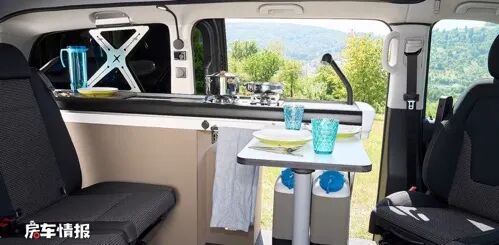 而操作台的下方还有储物空间,能够存放一些行李箱或者其他日用品,也方便拿取,上方的卡槽则可以连接一张小型的餐桌,这样日常的就餐或者工作需求也可以满足了。