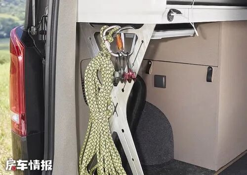 而最大的亮点就是,虽然整辆车的体型并不是很庞大,但是在这样小巧的车身内部,居然能够容纳一辆自行车,而这也全部得益于整个厢体内部模块化的设计,是采用了X型的超纤薄骨架,以代替传统的家具橱柜和地板导轨,致使车内能够最大程度的利用空间,以用来存放各种露营所需的装备。