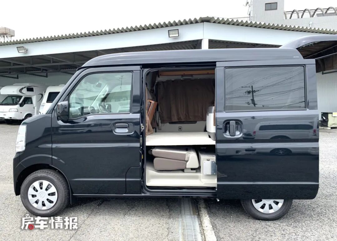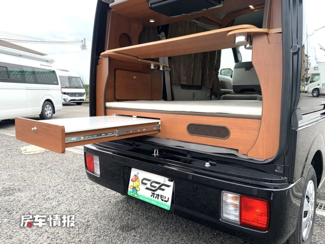 整辆车是基于马自达scrum底盘所打造而成的,从外观上看和我们之前介绍的铃木小床车还是非常相似的,方盒子造型也是他经典的造型设计。