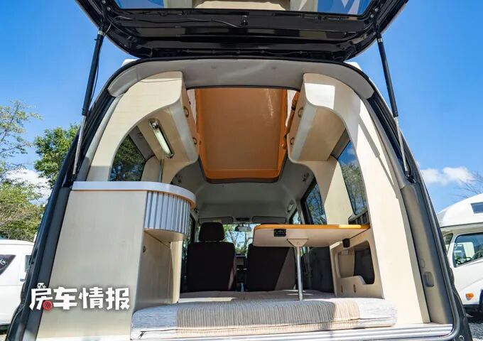 作为一款核载四个人的车型,那么这款车也提供了另外一张双人床,就在于顶部的升顶空间之内,如此一来可以满足四个人的睡过需求。