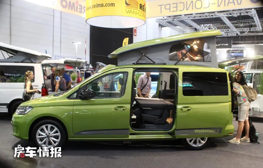 外观上,这款车采用了绝对亮眼的荧光绿色,前格栅也是延续了现阶段大众的家族式设计,比较扁平化的造型,为了保证在车内能够拥有一个可以正常站立和活动的空间,这款车在顶部还加入了升顶机构。