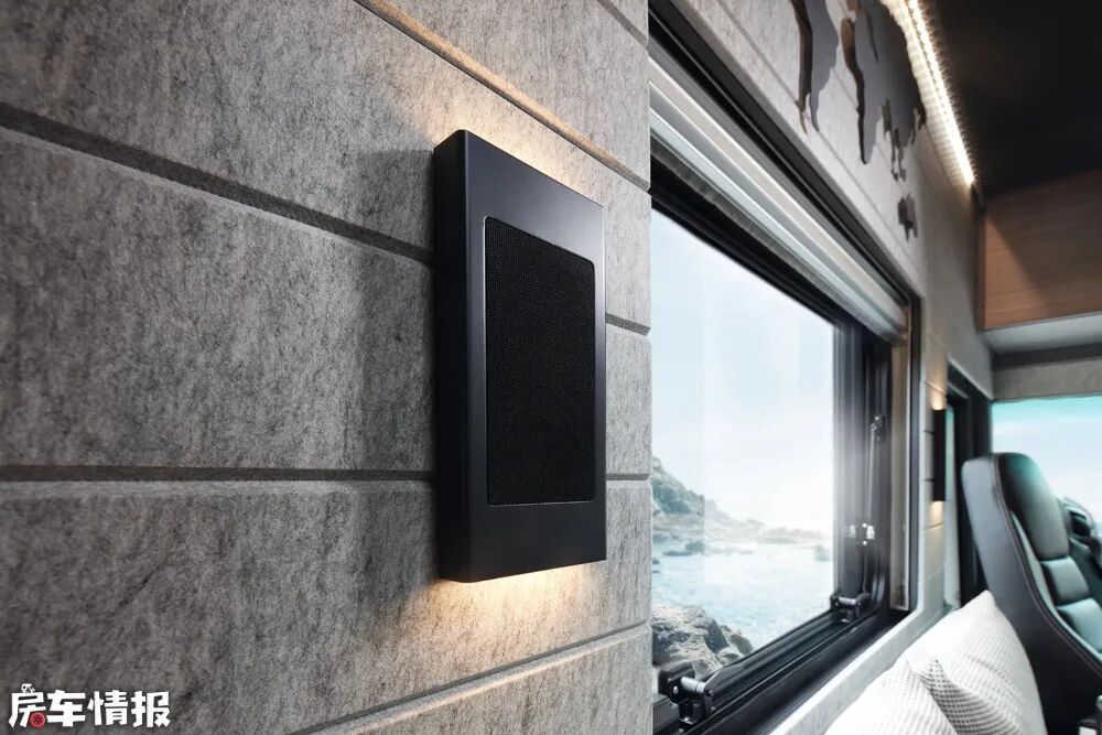 水电方面,这款车是提供了基础的逆变器、600安时可离网的电力系统、以及440瓦的太阳电池板、370升的净水箱,另外全车还提供了带紫外线的滤水系统,可以更放心更安心的使用饮用水。