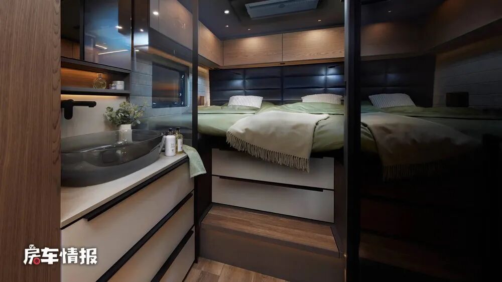 进入车厢内部,轻奢的装饰风格如同走进了一间豪华酒店的总统套房,加上宽敞的空间,这才是我们向往的豪华房车吧。