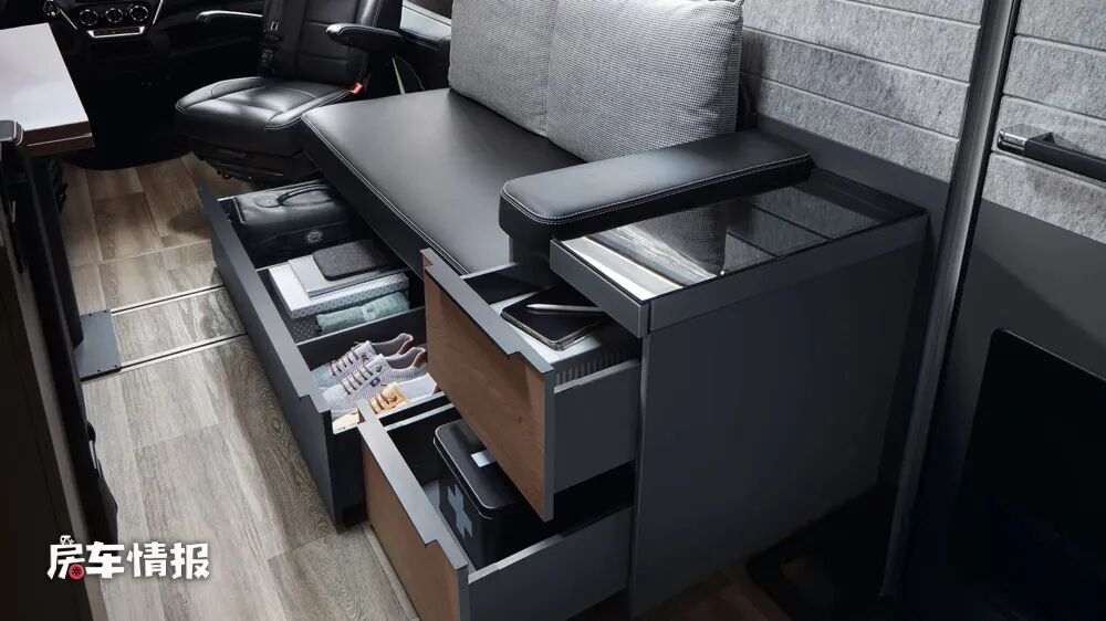 而两张沙发的坐垫下方和扶手下方则隐藏了多个储物空间,由此可以看出整辆车的储物能力还是非常不错的。