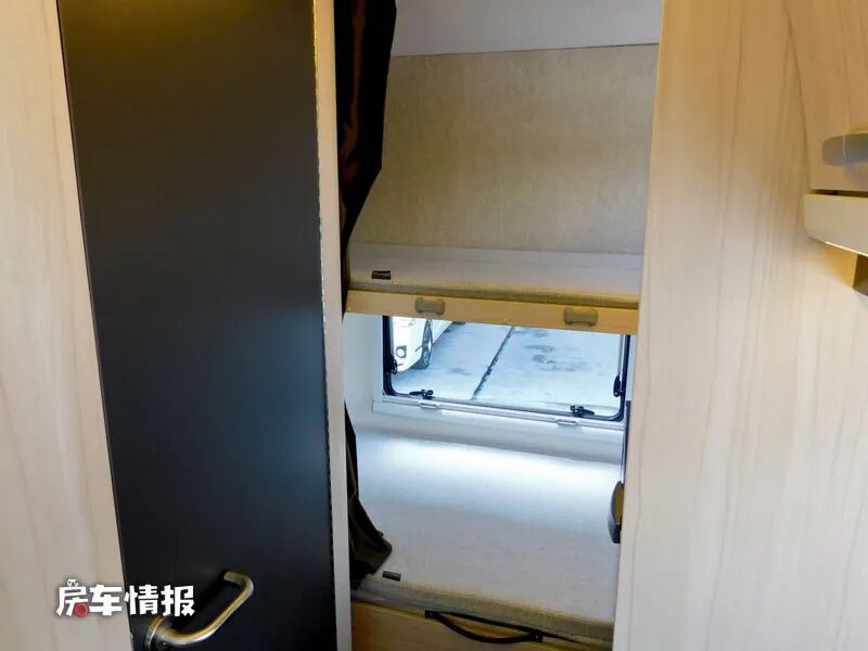 最后就是位于车厢尾部的休息区了,因为受限于整体车身尺寸,尾部的休息区是采用了上下单人床的设计,上下各能容纳一名成年人使用。