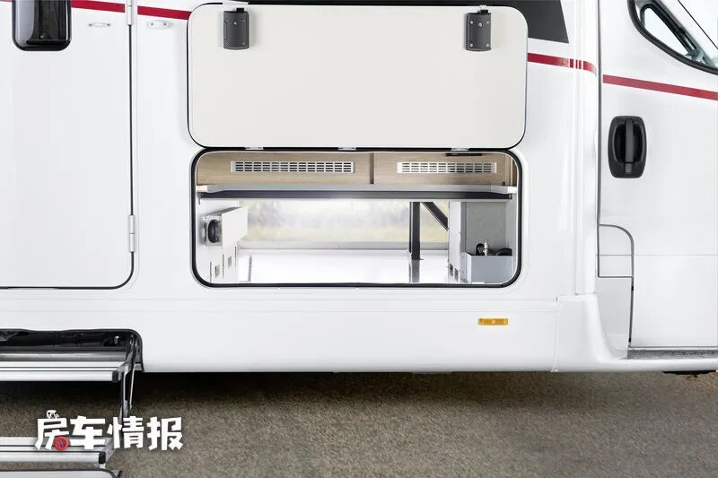 为了可以满足基础的车外生活所需,也提供了基础的遮阳棚、工具箱、贯通式储物舱和室外厨房等。