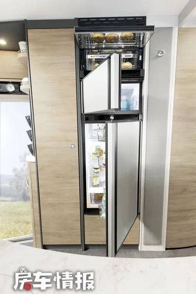 而全车的177升双开门冰箱和烤箱则位于乘客门的后方,这样在厨房做饭的时候一转身就可以打开冰箱拿取食材了,还是相当方便的。