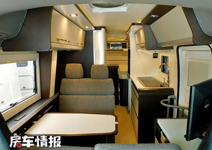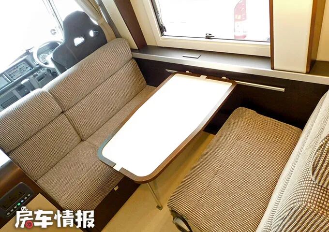 进入车厢内部,其实整体的布局和设计还是属于比较主流的日本房车设计的,只不过在空间上相较其他小型的床车会略胜一筹。
