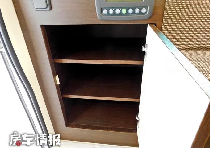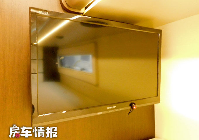 靠近乘客门处依然是打造成了一个实用的鞋柜,上方提供了一台电视机,能够满足日常的娱乐需求。