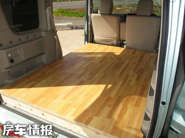 当晚上需要睡觉休息的时候,则需要将前方的双人乘客座椅放倒放平,与后方的平台齐平,组成一张简易的床铺,身材娇小的人也能容纳两个。