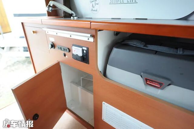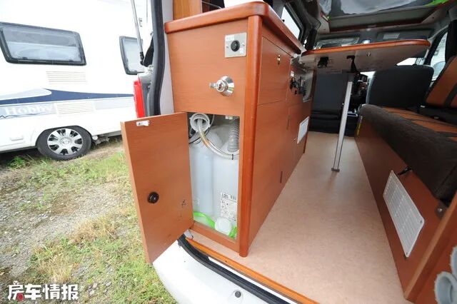 车尾部配备有水箱和可抽拉式的水龙头,拉出后在室外接水也更方便。包括车尾部的储物空间配备的净水箱容积也是不小,即使去稍远的地方旅行用水也可以得到保证。