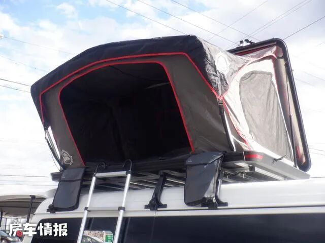 这辆车依旧采用了大火的日本大热的床车底盘丰田海狮打造,搭载2.7升的汽油发动机,匹配6AT变速箱,带有四驱系统,最大功率118千瓦,峰值扭矩243牛·米,白+黑的搭配看起来质感满满。车顶架看起来就十分的结实,材质用料都比较精品。