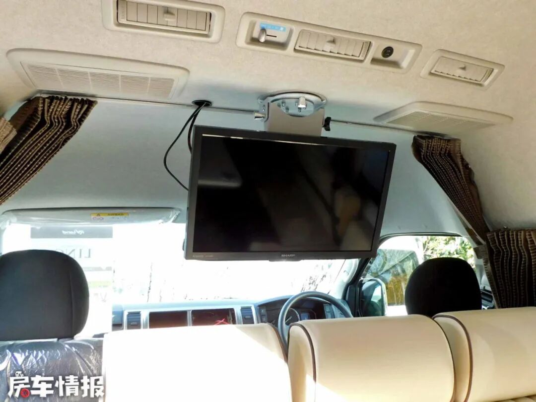在驾驶室下方安装有固定电视,这个位置的话整个会客区是都能看得到的,休闲时看节目打发时间看电视也不会脖子疼。