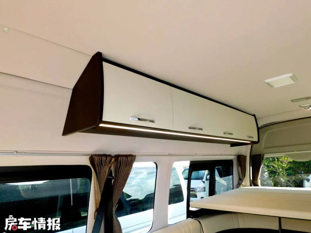 作为同尺寸的床车来说,这款车内的空间还是比较充足的,无论是整体的通透性还是空间感,都比较舒服,不会让人感觉很压抑。