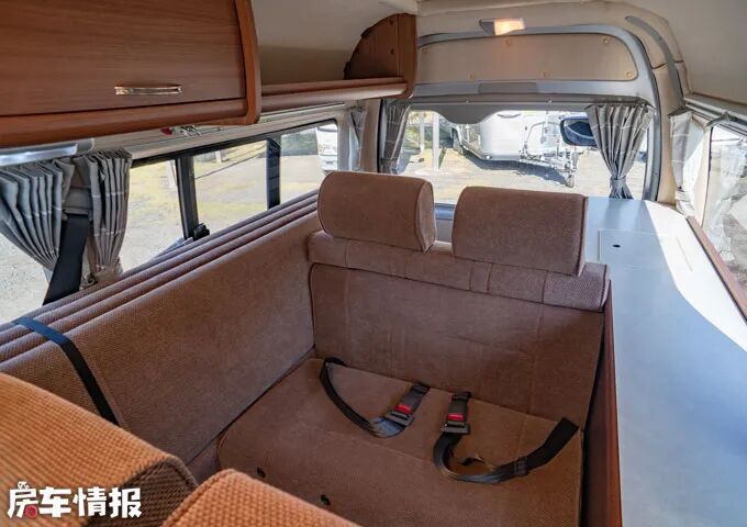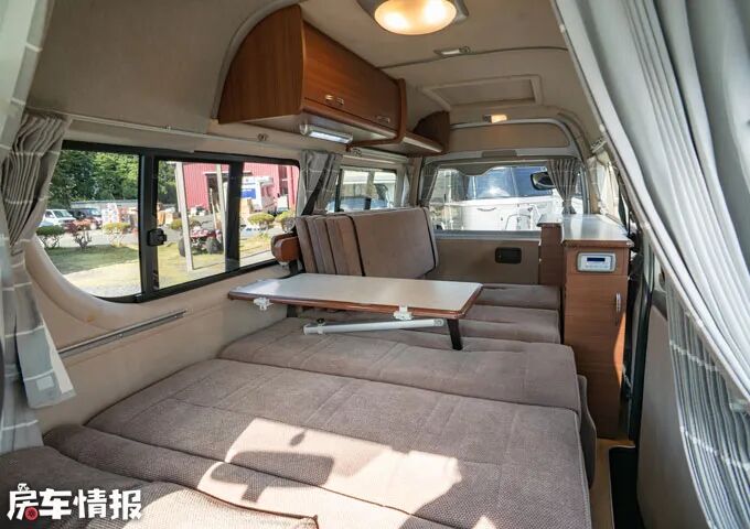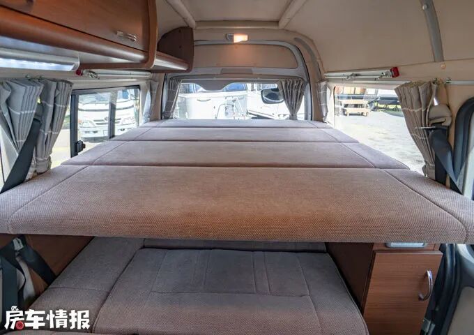 如果觉得床铺不够大的话,还能在前方会客区上方拉槽内放上床垫,变成双层床铺,这样一来整车可供4人休息,而且人均可使用空间也是不小的。