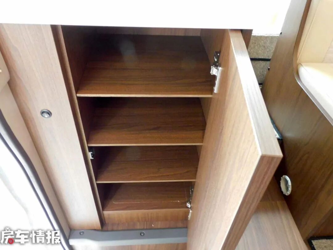 车内卫生位于车厢中部,内部空间不小,可根据需求放置卫浴用品,如果不需要车内卫生间还可以作为仓库。