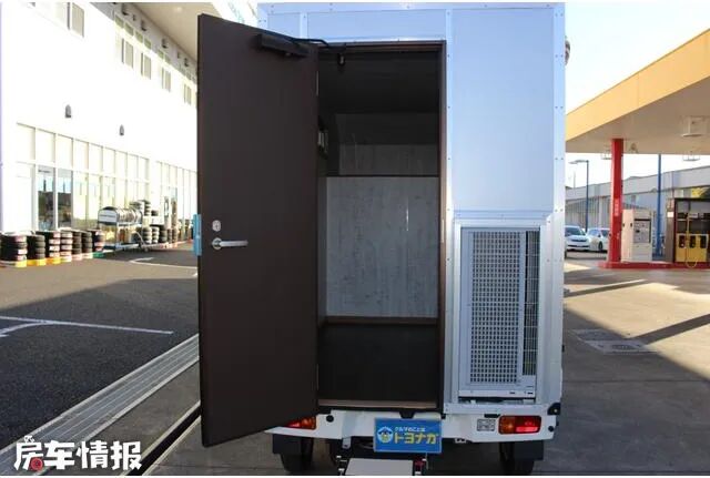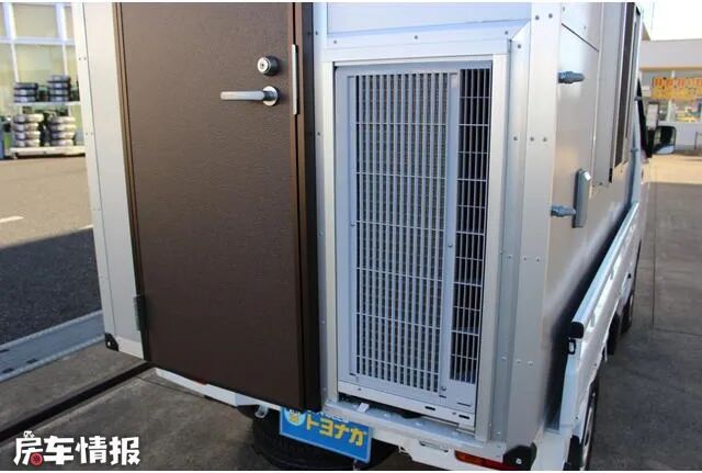 之所以车厢多长出来一截,是因为这是一辆后入门床车,在尾部还有整车的空调外机,车门是棕色的,所以一眼就能发现。不过高度有些高,上下车要注意安全,放一个小梯子也是可以的。