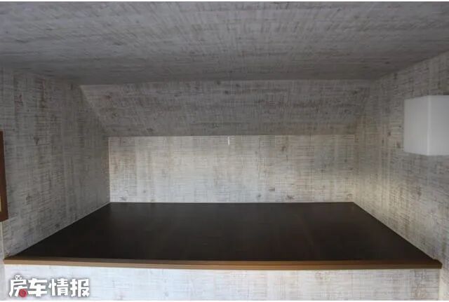 在驾驶室上方是一张额头床,可以容纳两个成年人在此休息,所以空间还是比较充足的,为了安全还是建议通过爬梯来上下床,将近2米的高度还是要注意安全的。