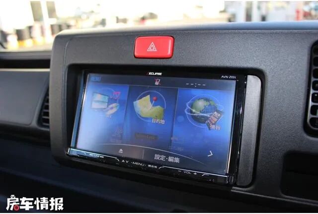 驾驶室内与以往的床车类似,不会有很强的卡车的笨重感。座椅采用皮质包覆,舒适性还是不错的。导航倒车影像一体机还可以作为影音系统来使用,驾驶中支持导航+播放音乐功能,与国内的车还是一致的。