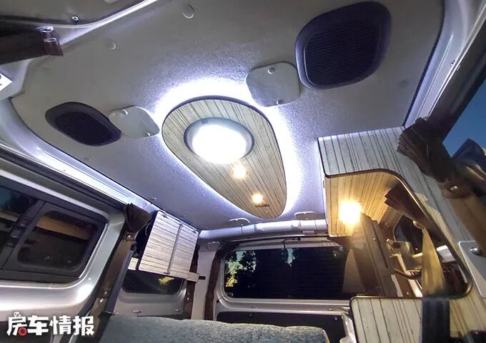 在车厢顶部的灯比较有个性,与车内装修风格一致的原木装饰,看起来一致性还是很高的。在车辆两侧还有照明灯,为整体空间提供了充足光线,所以整体看上去车内的田园风格还是很让人舒心的。