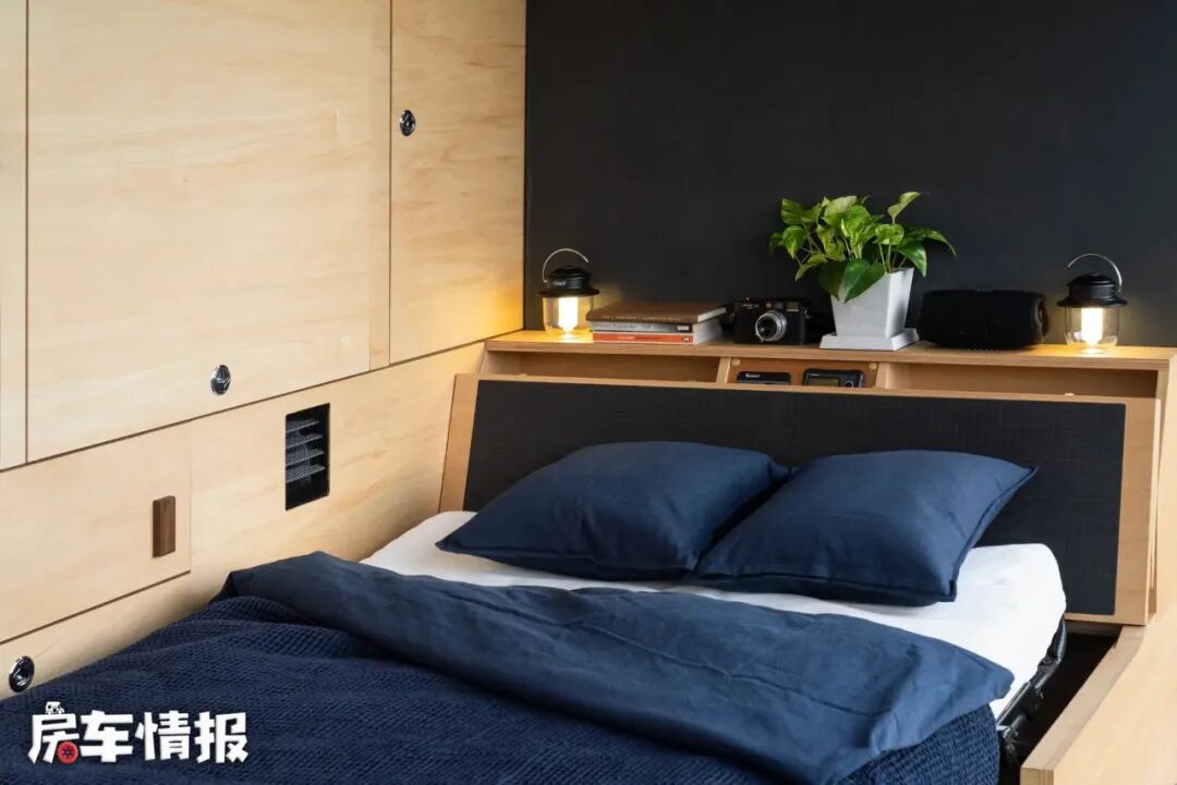 办公结束后,车内可以拼成一张大尺寸双人床,能够两口人居住,躺在床上看风景,是不是比简单的露营要有意思多呢?