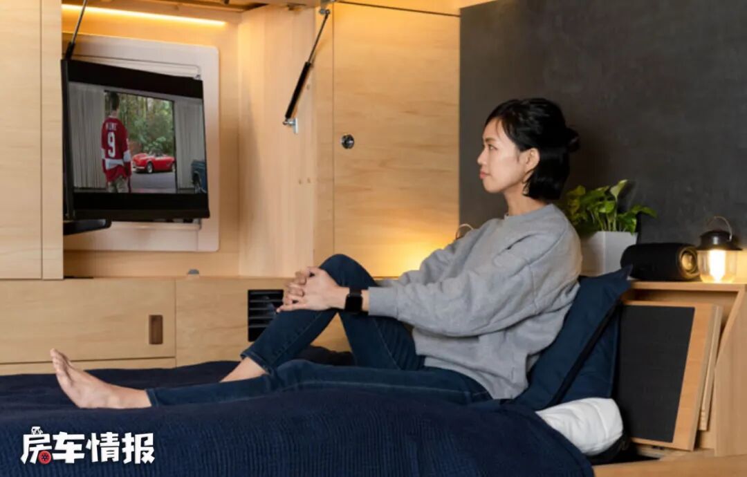 当房车的完全状态形成后,车厢内外变成一个完全通透的形态,这时候,车内生活区完全融入到外部环境中,无论是休息还是办公,甚至是和外部活动的家人交流,都变得十分有趣。