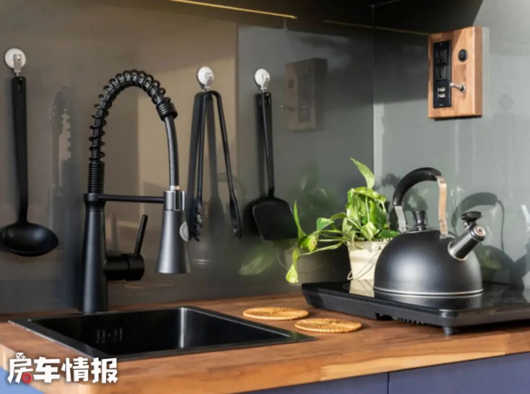 除此以外,车内也提供了一个功能设备齐全的厨房区域,洗菜池、电磁炉、烤箱等一应俱全,喜欢自己动手做饭的完全可以得到满足。