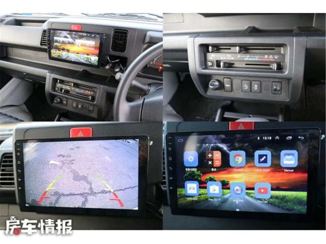 驾驶室操作台上安装了9寸Android显示屏,以及带蓝牙影音娱乐系统,安全上带有ABS、车道辅助系统、安全气囊、无钥匙系统、防侧滑/防碰撞系统,LED大灯节约电能。动力系统上采用日本大发底盘,1.0T排量汽油发动机,四驱动力。
