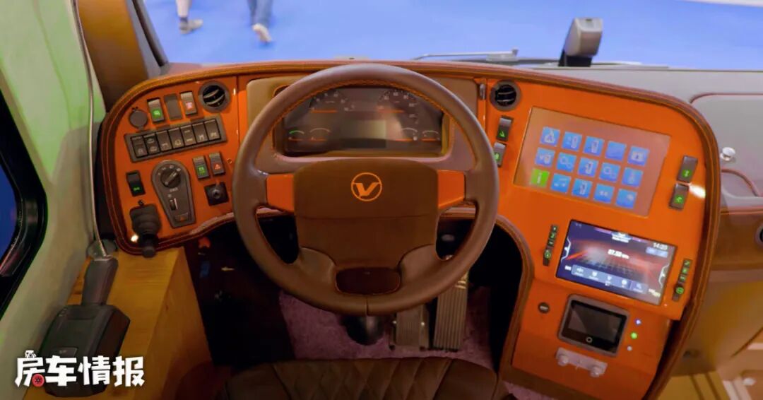 驾驶舱与咱们常见的大巴车类似,但方向盘的尺寸不大,稍加熟悉后操作起来也不会太过费劲。关于动力方面,相关资料不多,仅知道该车配置了503马力的后置发动机和空气悬架系统。