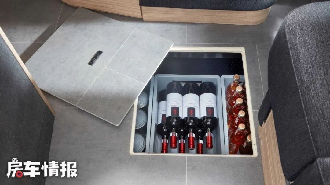 在会客区的地下还带有一个储物暗格 ,刚好可以放置饮料酒水,不用担心开车的过程中散落,平常盖上盖板一般人绝对发现不了,感觉放置一些随车携带的值钱物品也没问题不担心丢失,可以说是藏在地板下方的保险柜。