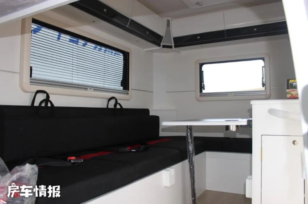 车身外部的一些设备,如双层外推窗、车厢中门等关键部件,也全都是标准的房车配件,并没有因为整车尺寸小,就采用了更小尺寸的配件,因此在日常使用的时候,也不会感到憋屈。