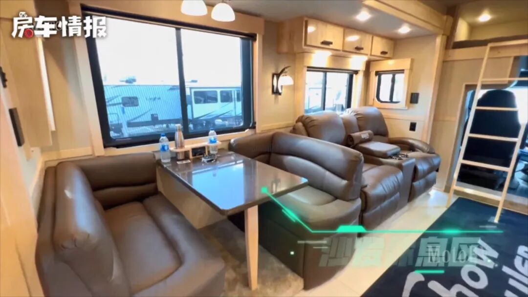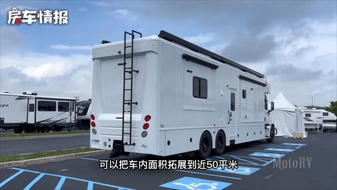 今天找来的是一款标准的美式豪华房车,这款由ShowHauler房车公司打造的超豪华型房车,基于福莱纳卡斯卡迪亚重卡打造而成,硕大的车头造型搭配上超长的车身尺寸,在感官上给人营造出了十分震撼的感觉,动力上这款车采用的是一台最大马力455匹,峰值扭矩2373牛·米的柴油发动机,匹配一部AMT自动变速箱,带有12个前进档和4个倒车档,车身外部提供了四个拓展舱,全部打开后可以把车内面积拓展到近50平米,整车瞬间变身一个带有超大客厅和豪华卧室的移动小公寓,目前这款车海外售价约合人民币268万元,更多详情来看视频吧~