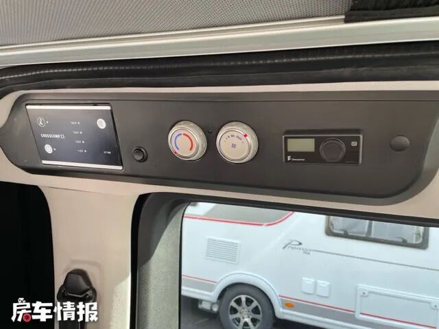 在厨房吧台的上方是该车的控制面板,采用触屏式设计,相较于物理按键则增加了控制面板的使用寿命。同时在这里控制和查看整车的水电系统也更加方便了。