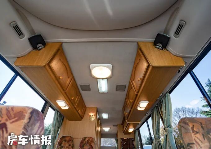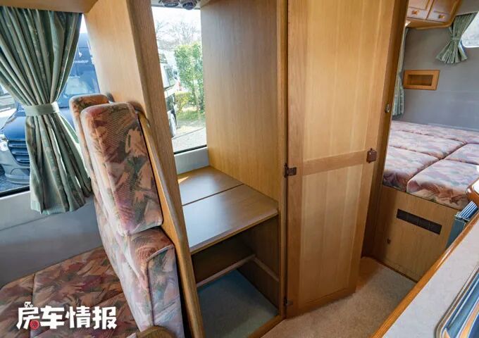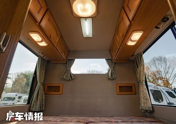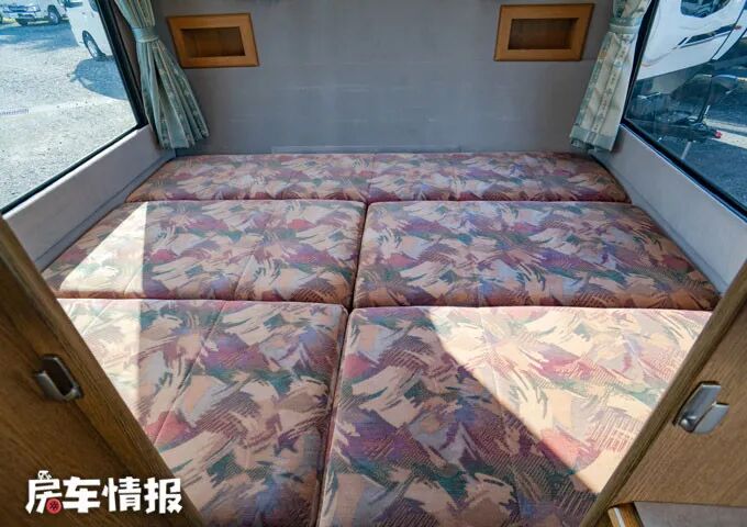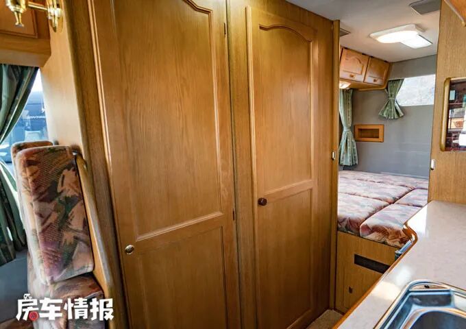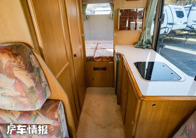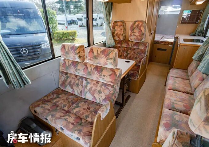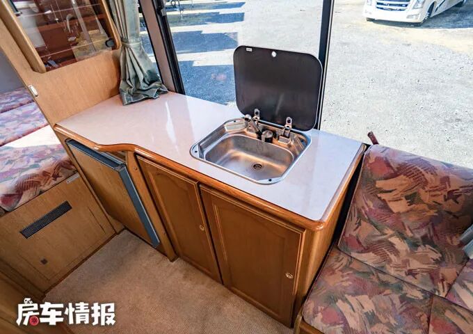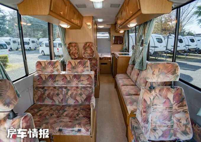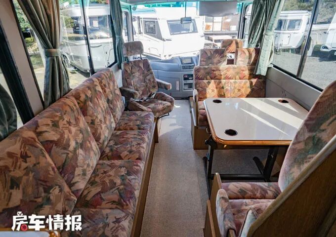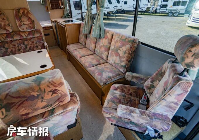 这其实是一款二手房车,年代有点长,所以内部的装修看上去稍显复古,有点我国80年代的装修风格,建议后期买家可以更换一下内饰颜色。