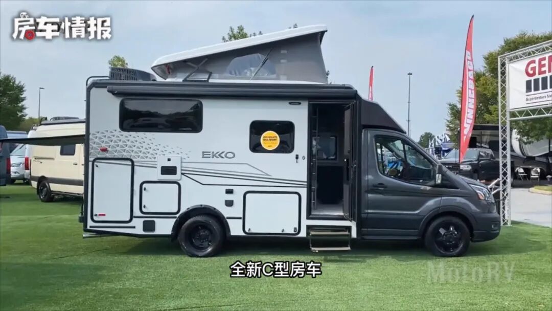 今天给大家找来的是一款由美国温尼贝戈房车公司推出的新款C型房车,这款新车基于福特全顺底盘打造而成,采用小额头造型设计,不过为了满足更多人睡卧需求,车顶部加入了一个弹出式设计,如此一来整款车可以满足4-5人同时居住,动力上这款车搭载的是一台3.5T汽油发动机,匹配10AT变速箱,带有全时四驱系统,理论上来说具有不错的非铺装路面通过能力,更多详情来继续看视频吧~