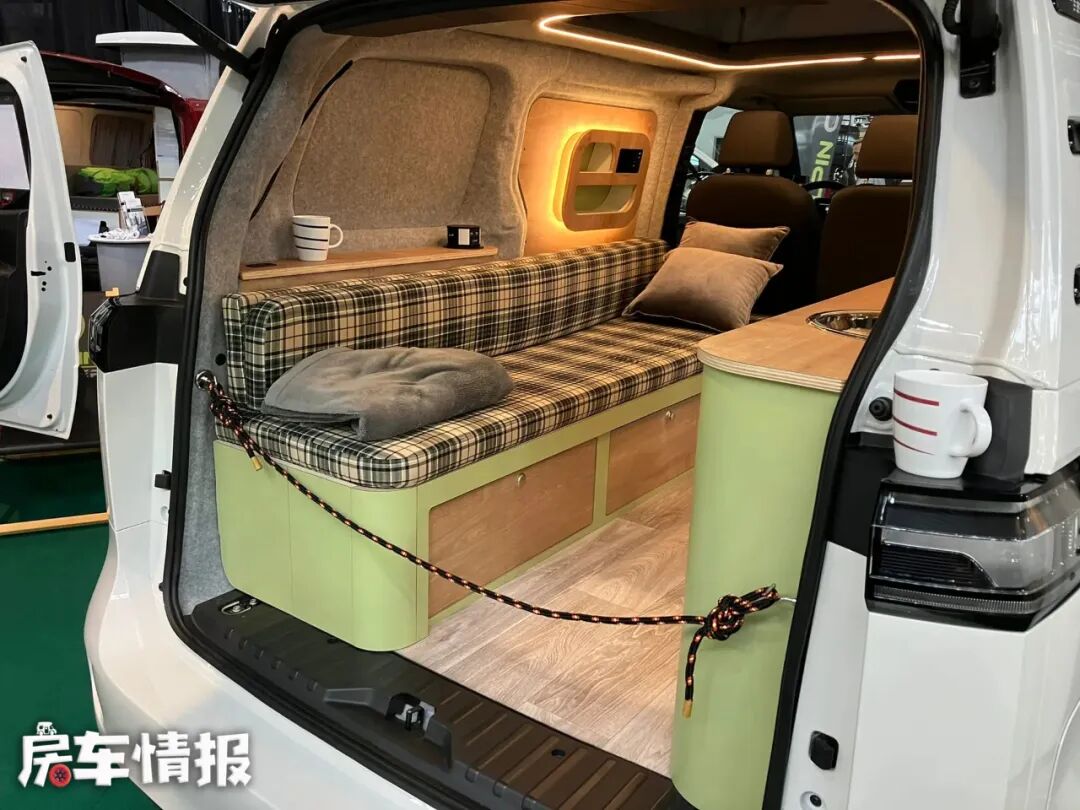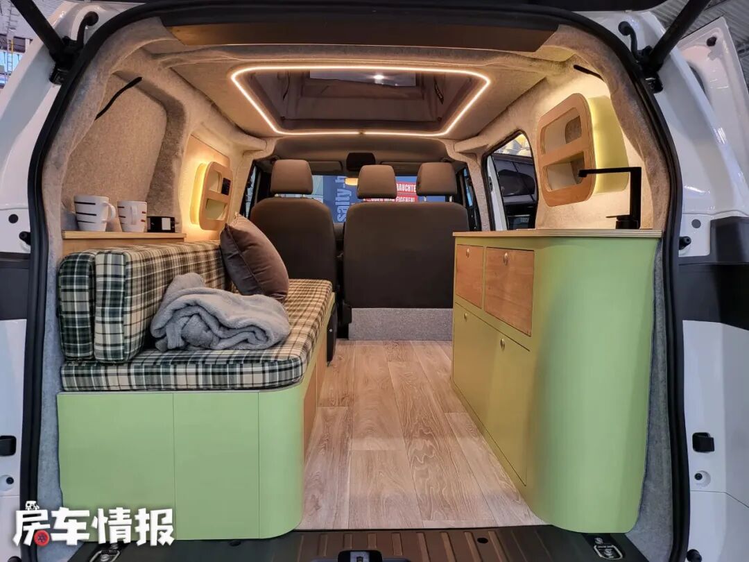 作为露营车,外观上也并没有过多改动,常规状态下与普通车型保持一致,不同是的在车顶加入了一个尺寸较小升顶设计,在休息的时候打开,不仅拓展了可使用的空间,同时也更有露营车的氛围。