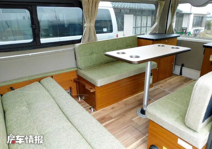 驻车以后将座椅向后翻折,此时就可以在生活区形成一个小型会客休息区,搭配中央可拆卸的餐桌,会客区同时坐下7个人完全没问题。