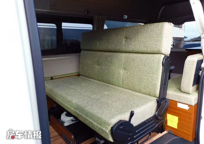 夜晚的时候,也可以 将所有座椅放平,拼成一张超大尺寸的双人床,整张床的尺寸从驾驶室座椅后方一直延续到车尾部,几乎铺满了整个生活区,如此大的床铺,可以让小朋友在上边随便翻滚。