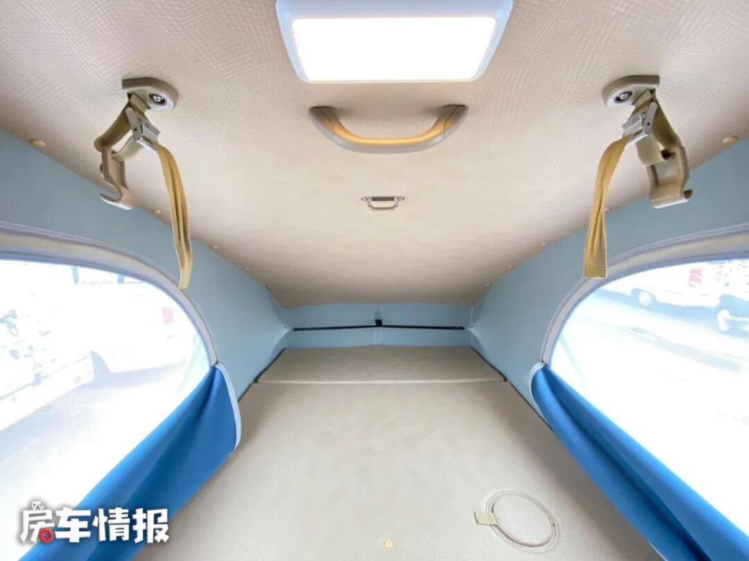 在车顶设有一部弹出式车顶,打开以后,可以在车顶变出车内的第二张床铺,在温度适宜的季节,也可以在车顶露营住宿,如此以来这款长度仅为4.2米的小车,可以在露营的时候满足一家四口人住宿。
