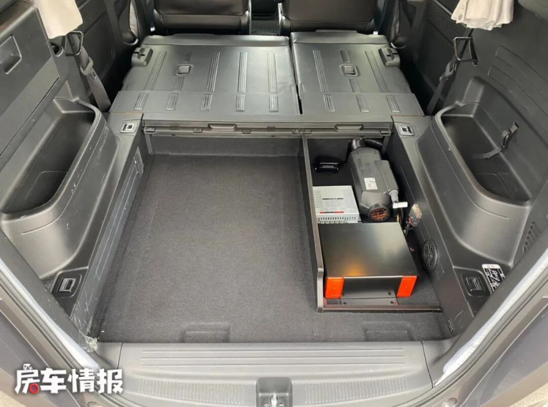 位于后尾箱下层的储物柜中,还设有一部伟巴斯特燃油暖风机,可以在温度较低的时候为车内提供暖风,同时也可以在寒冷的冬天提前为发动机预热。