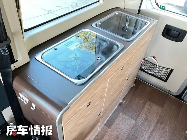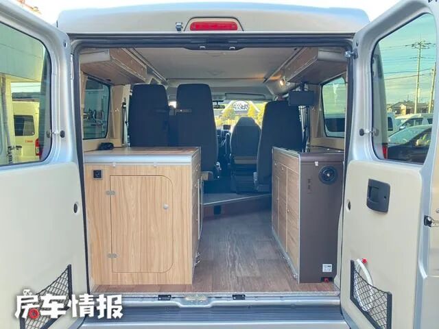 车厢内部的设计,可以用简单至极来形容也不为过,本身就不大的生活区空间,在布局上和国内露营车有很大不同,乍一看上去误认为就是一辆普通的五座车型。