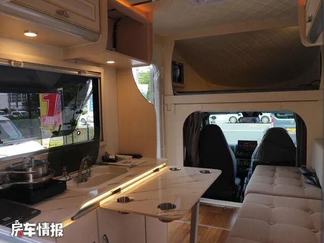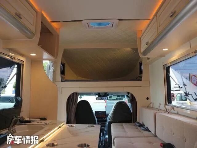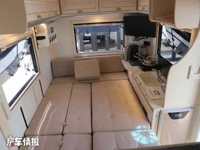 进入车厢内部,受限于车身尺寸,空间并不是很大,比起国内同价位的车型也要小了很多,为了获得更大的生活区空间,这款车内部并没有提供卫生间。