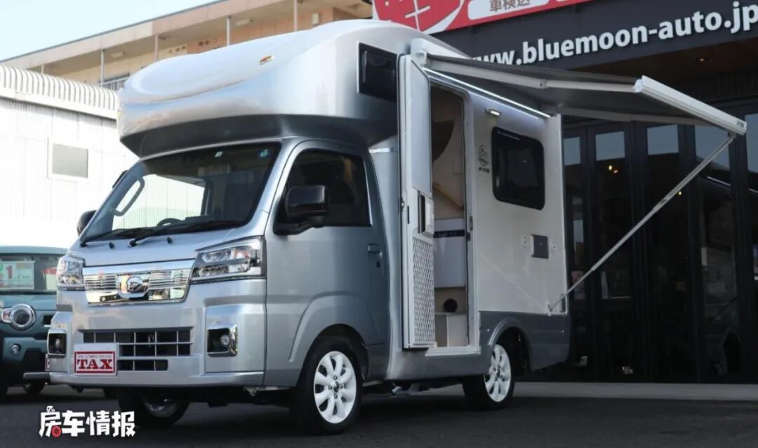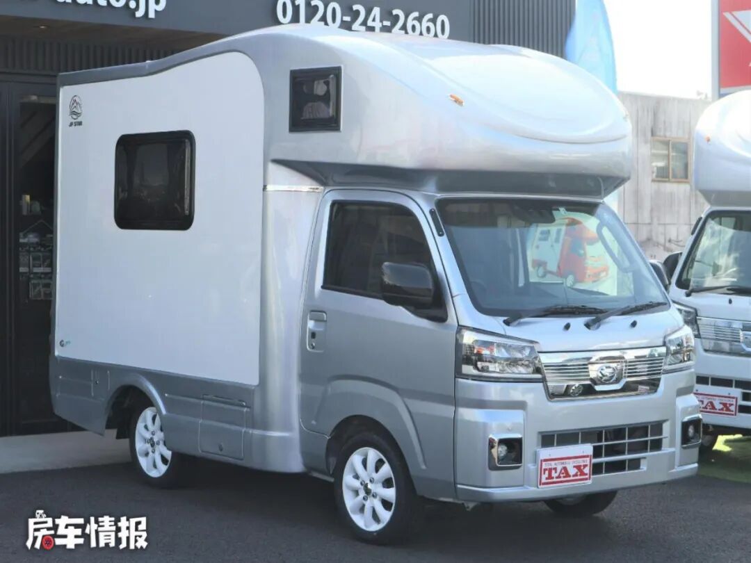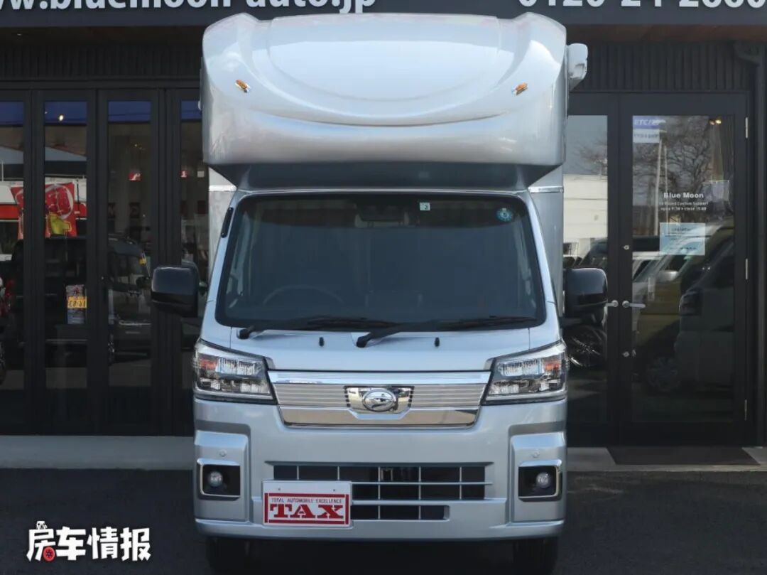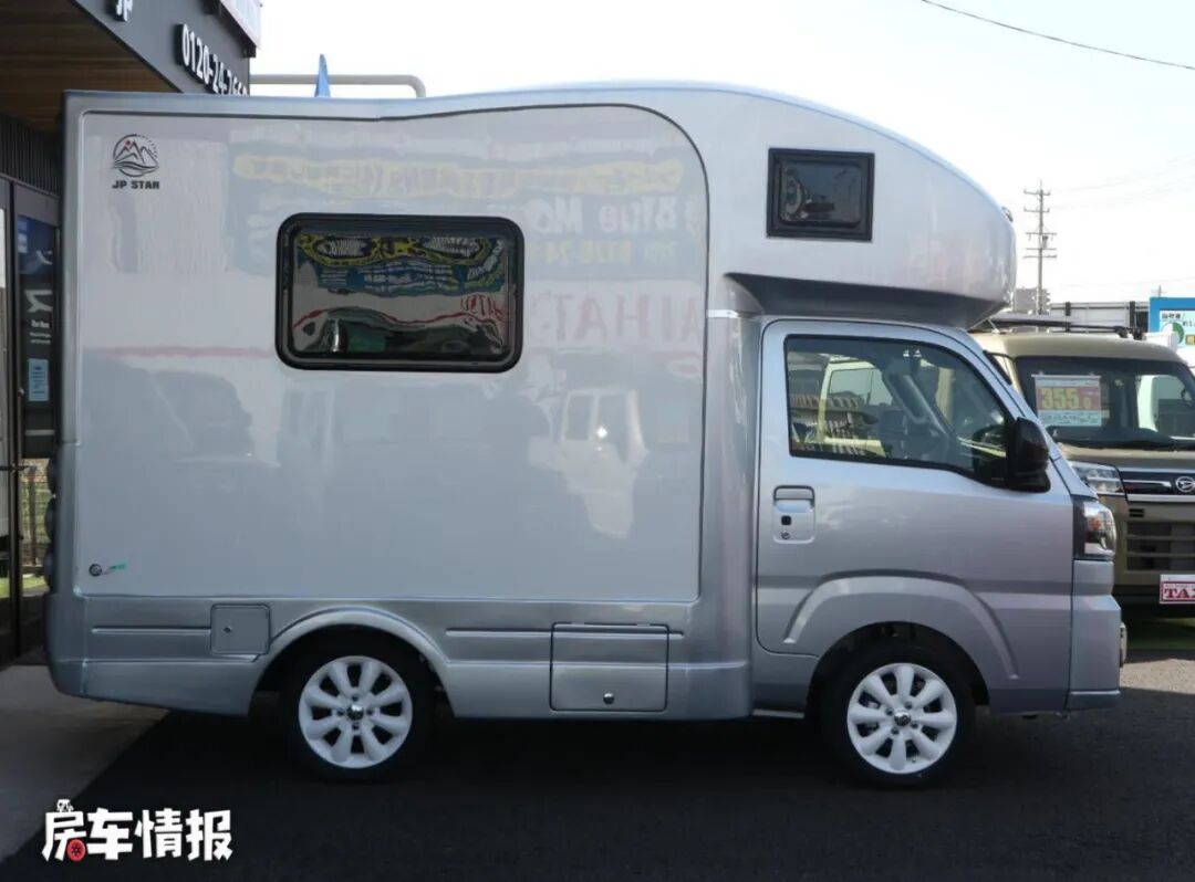 这款房车基于大发微型卡车打造而成,整车尺寸非常小巧,属于岛国特有的k-car范畴,整车长宽高仅为3790*1690*2480毫米,除了接近2米5的车高还算正常外,长和宽都是小到极致,由此带来的好处就是日常停放会比较省事儿,当然前提是在地面停车位。