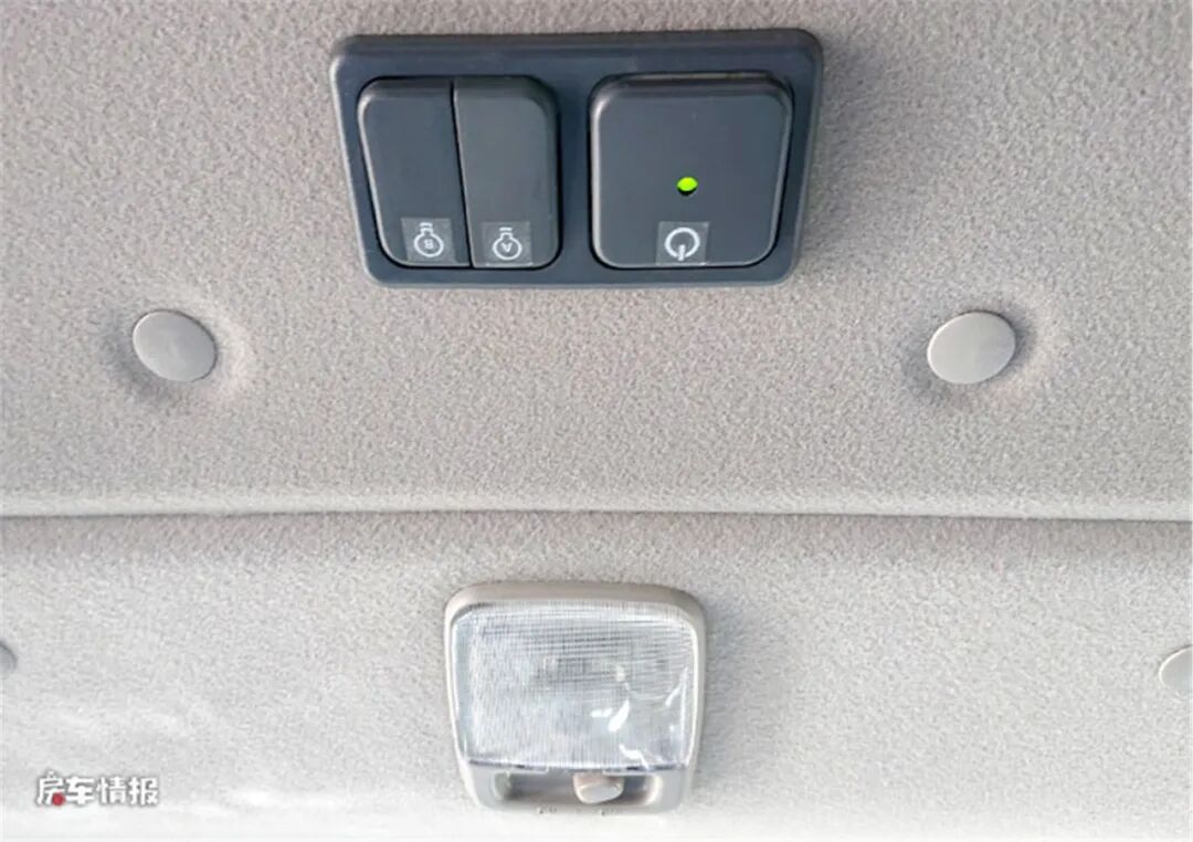 整个房车的灯光采用车顶的LED灯珠组成,非常省电,按钮开关就设计在灯具的旁边,方便操作。