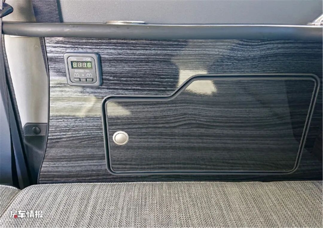 车内还标配了主副电池电量显示器,实现对房车的用电情况的全天候监测,可以及时提醒车主充电,从而不会使电瓶因亏电而导致损坏。