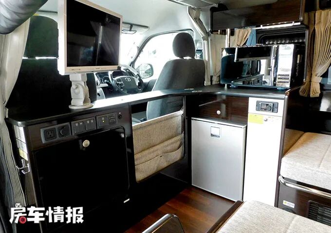 这台车采用丰田海狮底盘打造,众所周知,日本车都是比较小的,非常小气,这台车也不例外,照我们国内的B型房车的尺寸来说也是要小很多,小编总是在想,所有东西都做的那么小,这日本人用起来不会感到压迫局促吗?