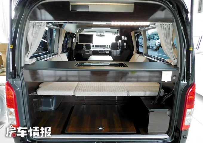车辆虽然是很小巧。但是装载可不少啊,我们常见的房车B型也就核载4人,而大一点的C型也就核载6人呗,而这台日本的B型房车居然核载8人,着实震惊到小编了。而且夜晚还可以给3个人提供睡卧空间。